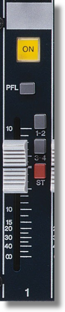 Ein - Aus Schalter für den jeweiligen Kanal. Ist er ausgeschaltet kann der Ton nicht zu den Boxen gelangen. |